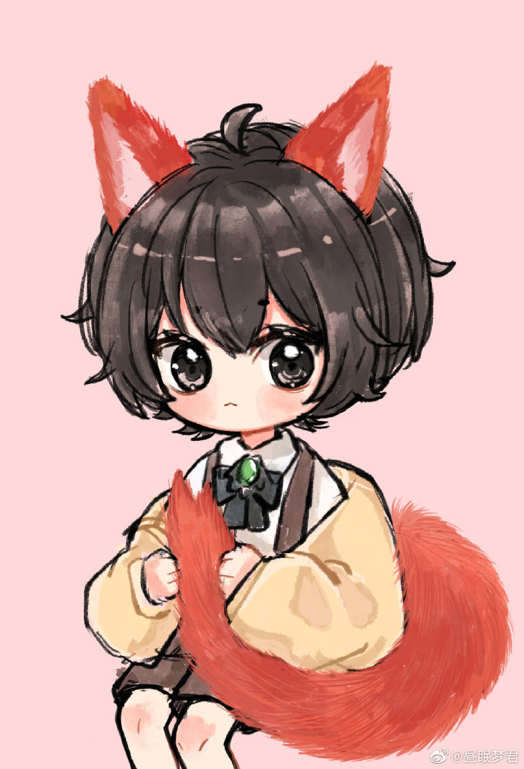 苏黎是只小狐妖。 别的妖怪化成原型,有可怕的尖牙、锋利的爪子和令人胆战心惊的庞大身躯。 而他只有一对软乎乎的狐耳,一身顺滑的毛皮和一条蓬松火红的大尾巴。 毛绒绒又圆滚滚,走起路来,像颗行走的狐萝卜。